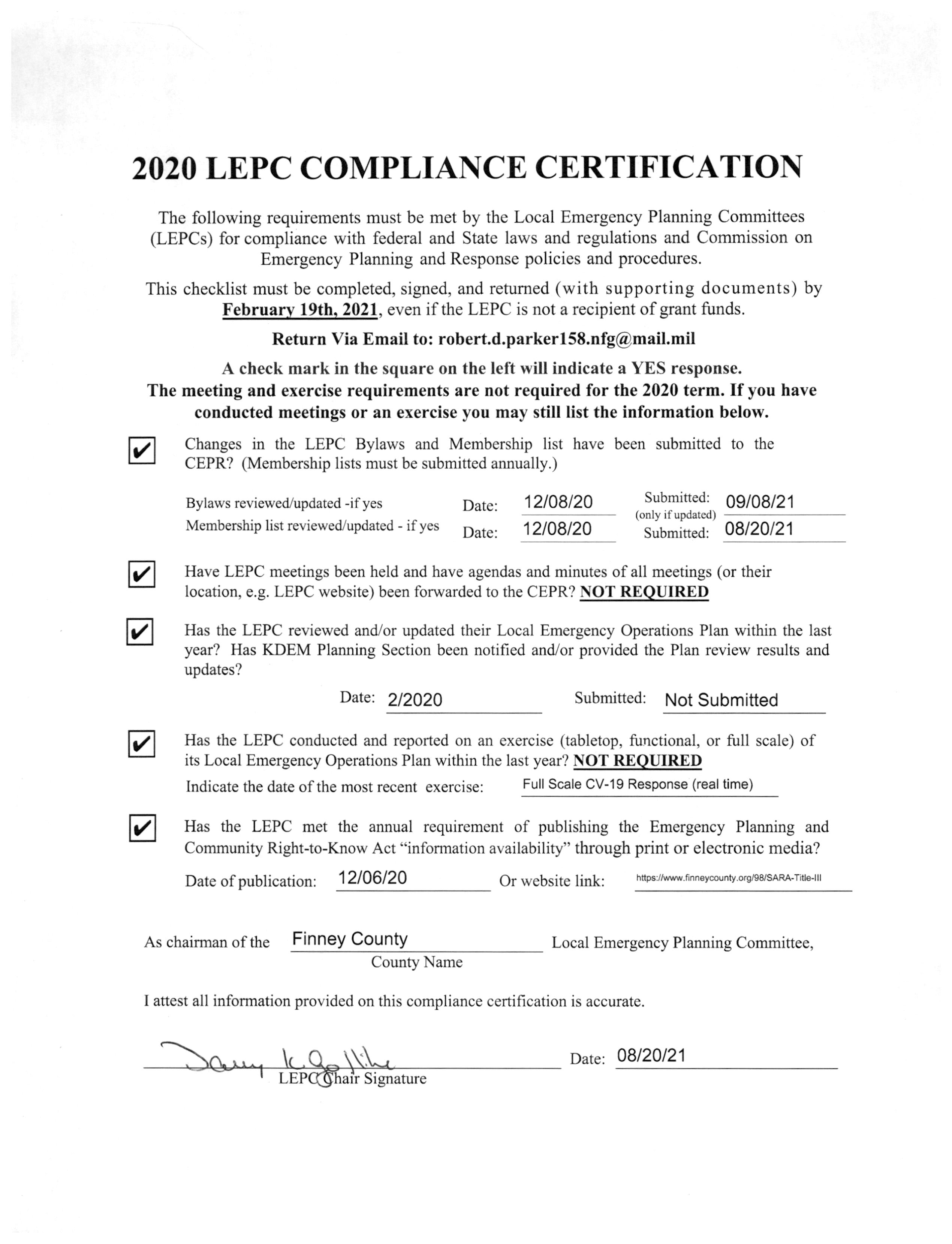2020 LEPC COMPLIANCE CERTICATION