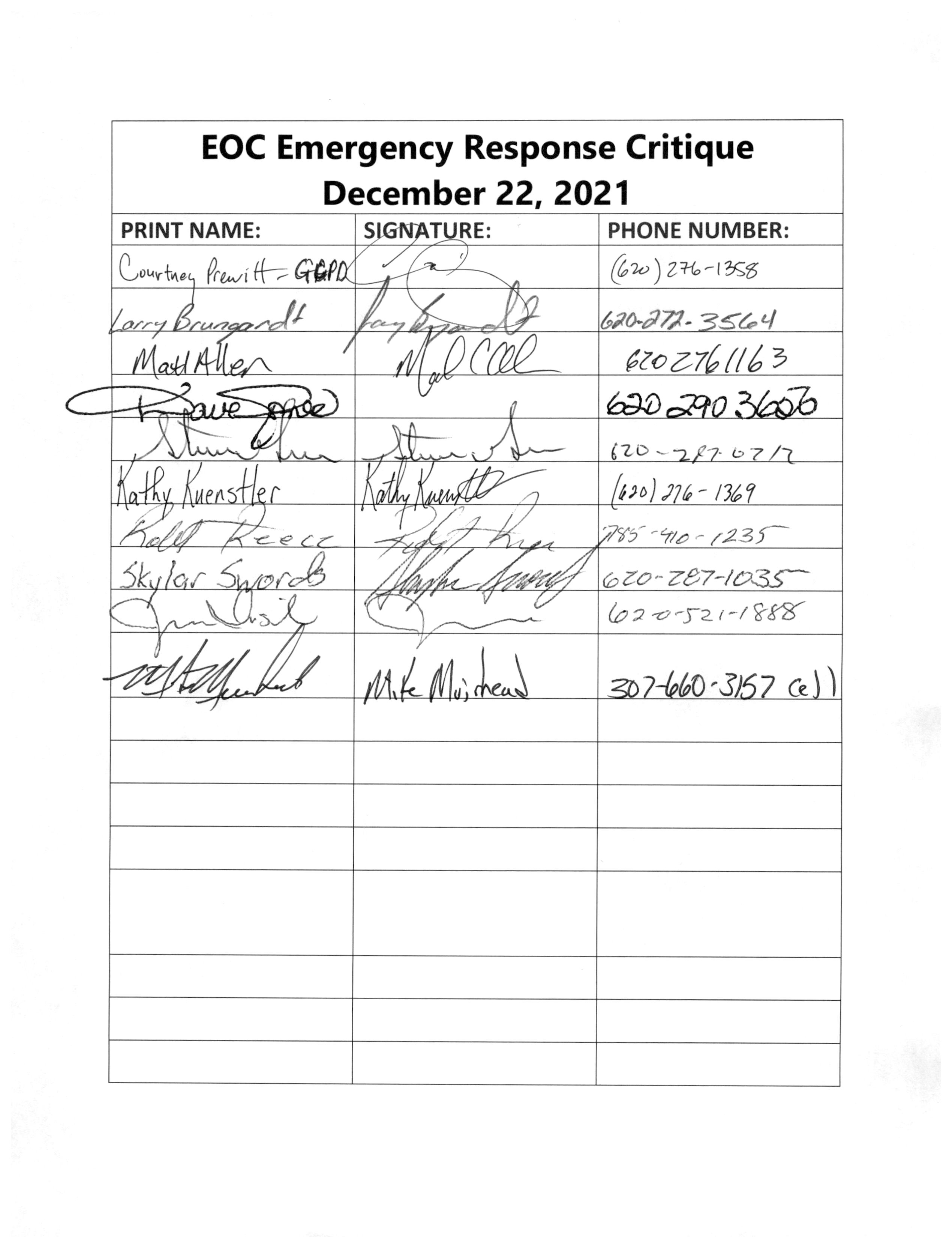 EOC Emergrgency Response Critique December 22, 2021 sign-off